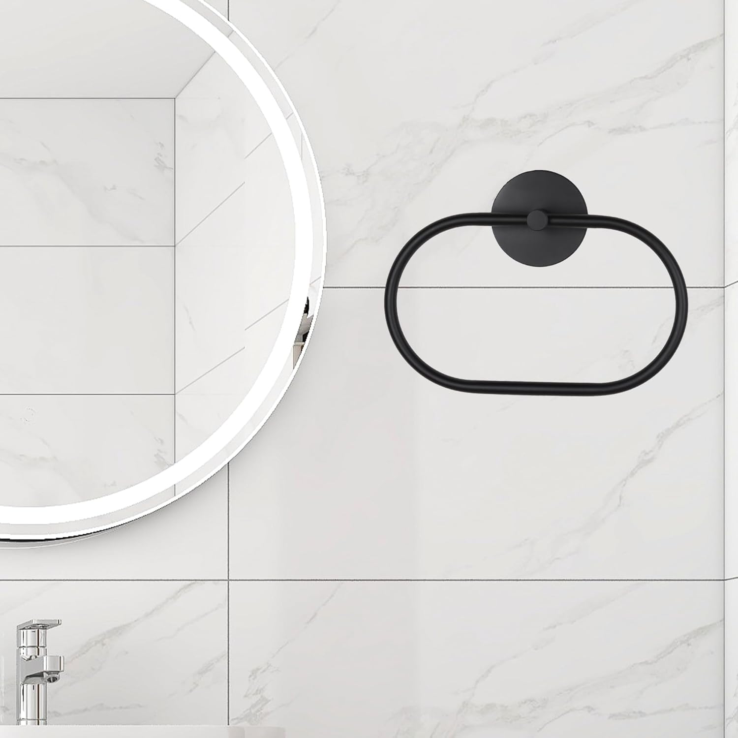 This modern self-adhesive towel ring offers a practical, space-saving solution for organizing towels in bathrooms, kitchens, bedrooms, and RVs. Crafted from durable stainless steel, it is rust-resistant and designed for long-term use in humid environments. The oval closed-ring design keeps towels secure while allowing quick drying and improved hygiene. Featuring a smooth 180-degree rotation, this wall-mounted towel holder provides flexible access without taking up unnecessary space. Easy to install with no drilling required, it delivers a clean, damage-free finish ideal for contemporary interiors.