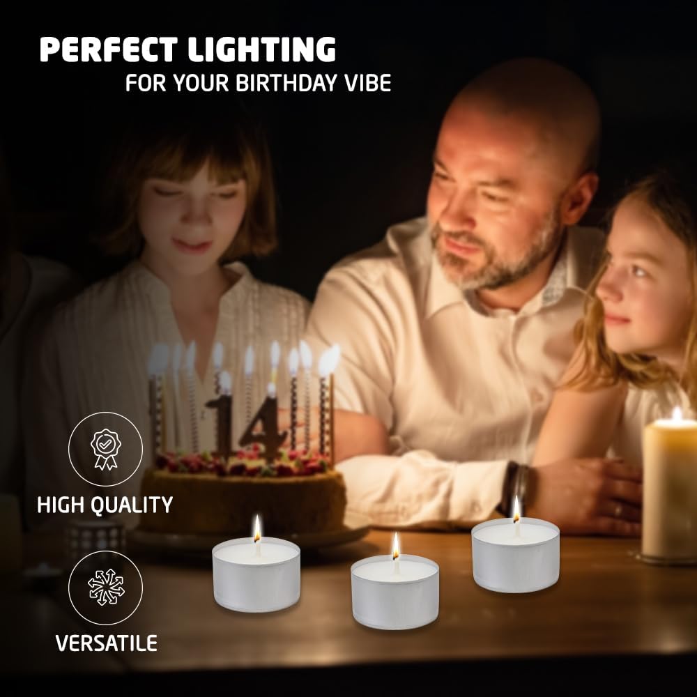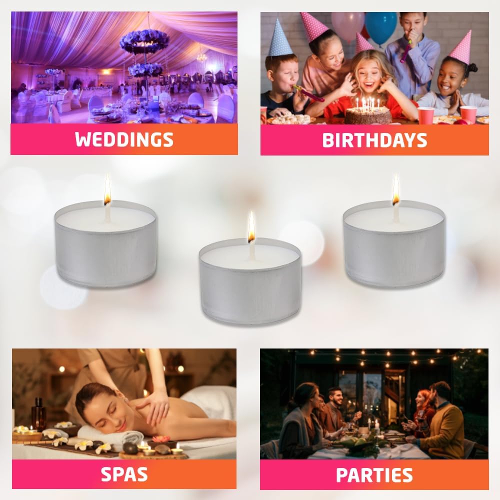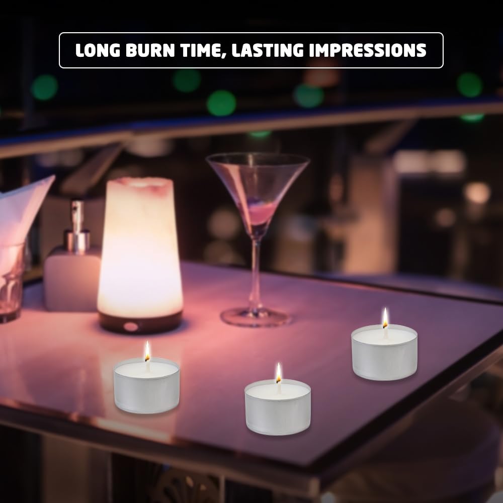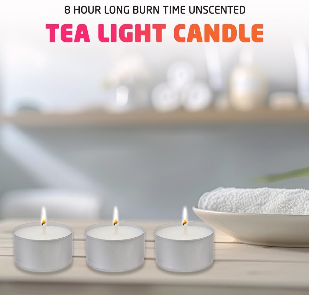 8 Hour Long Burn Unscented Tea Light Candles – Clean Cotton Wick | Pack of 10
