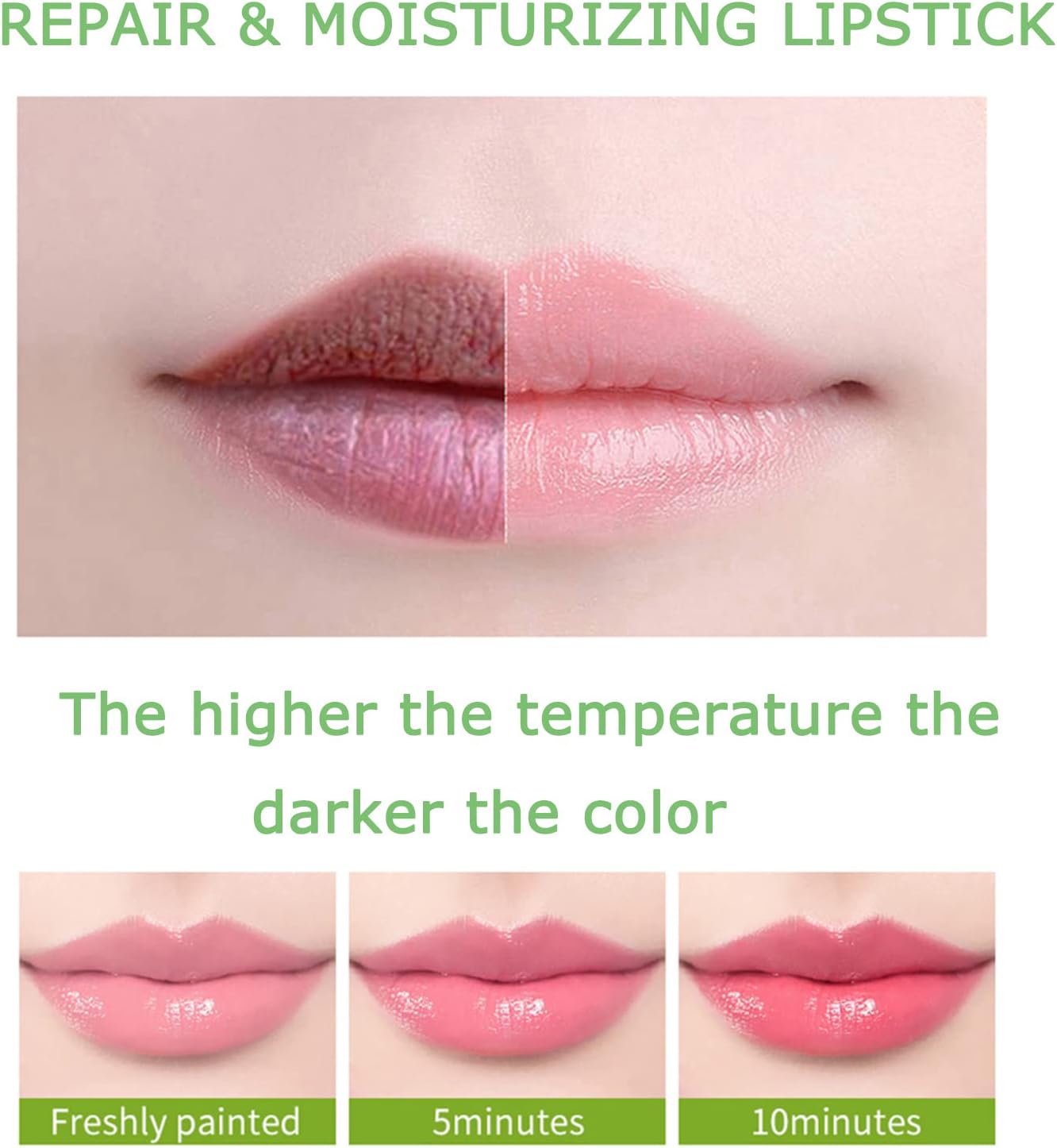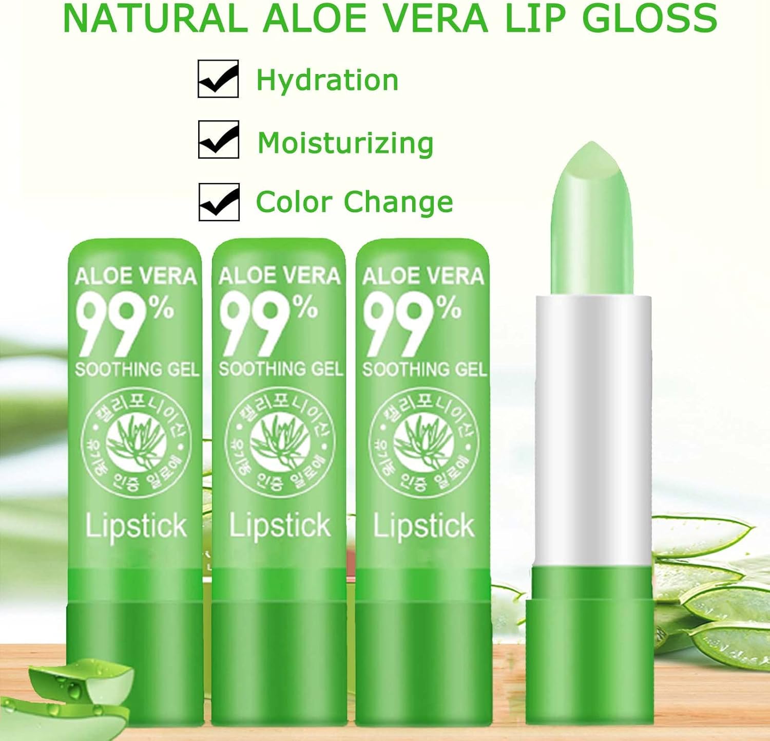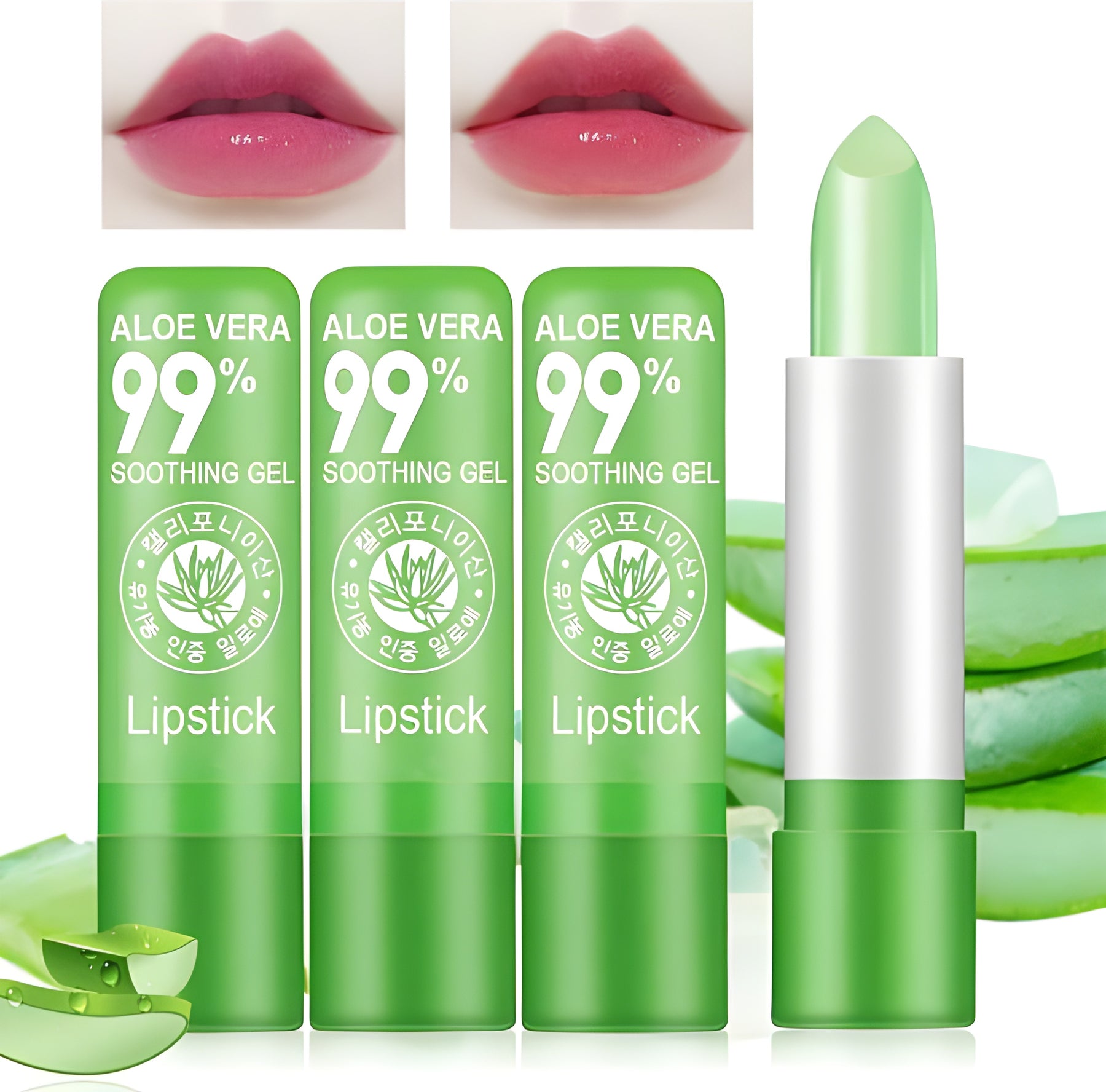This Aloe Vera lip balm set delivers deep hydration, natural shine, and personalized color for soft, healthy-looking lips. Formulated with Aloe Vera extract and nourishing ingredients, each lipstick penetrates deeply to lock in moisture and protect lips from dryness and peeling. The innovative temperature-responsive formula adjusts the lip color based on your body temperature and lip moisture, creating a unique, natural shade for everyday wear. With a lightweight, non-greasy texture and long-lasting moisture that lasts up to 8 hours, this color-changing lip balm provides comfort, hydration, and a smooth finish—perfect for daily makeup or gifting.