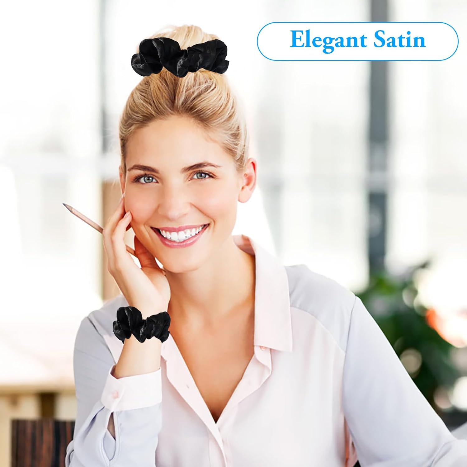 These elegant satin silk scrunchies offer a gentle, secure hold while protecting hair from frizz, breakage, and tension. Crafted from high-quality satin with a smooth, glossy finish, they glide easily through hair without pulling or tangling, making them ideal for both daytime wear and sleeping. The stretchy elastic core provides reliable hold for thick, thin, or curly hair while maintaining comfort and flexibility. Designed to be traceless and stylish, these versatile scrunchies complement any outfit and hairstyle, making them a must-have hair accessory for everyday use or gifting.