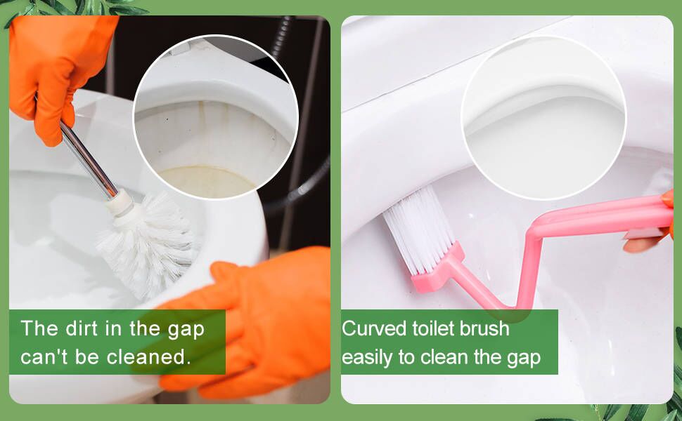 This curved toilet cleaning brush set is designed to deliver deep, effective cleaning in hard-to-reach toilet rims, corners, and narrow gaps. Featuring a V-shaped brush head with flexible, dense nylon bristles, it easily reaches under the rim and into blind angles to remove dirt, stains, and buildup quickly and efficiently. The ergonomic curved handle provides better control and comfort during use, while the compact brush head ensures precise cleaning without scratching surfaces. Versatile and durable, this 3-piece set is suitable for toilets, sinks, floor drains, sliding door tracks, and other small household corners.