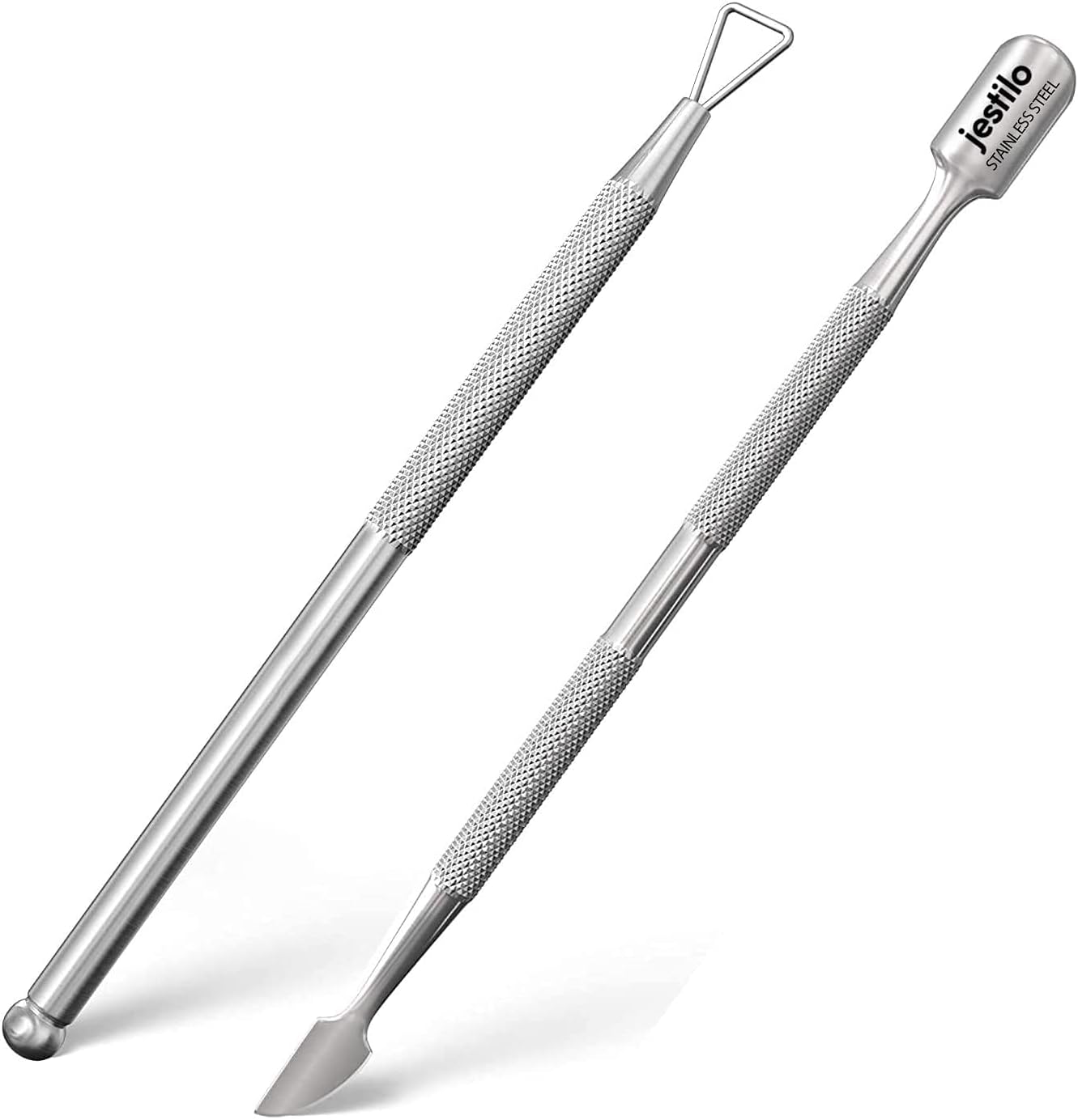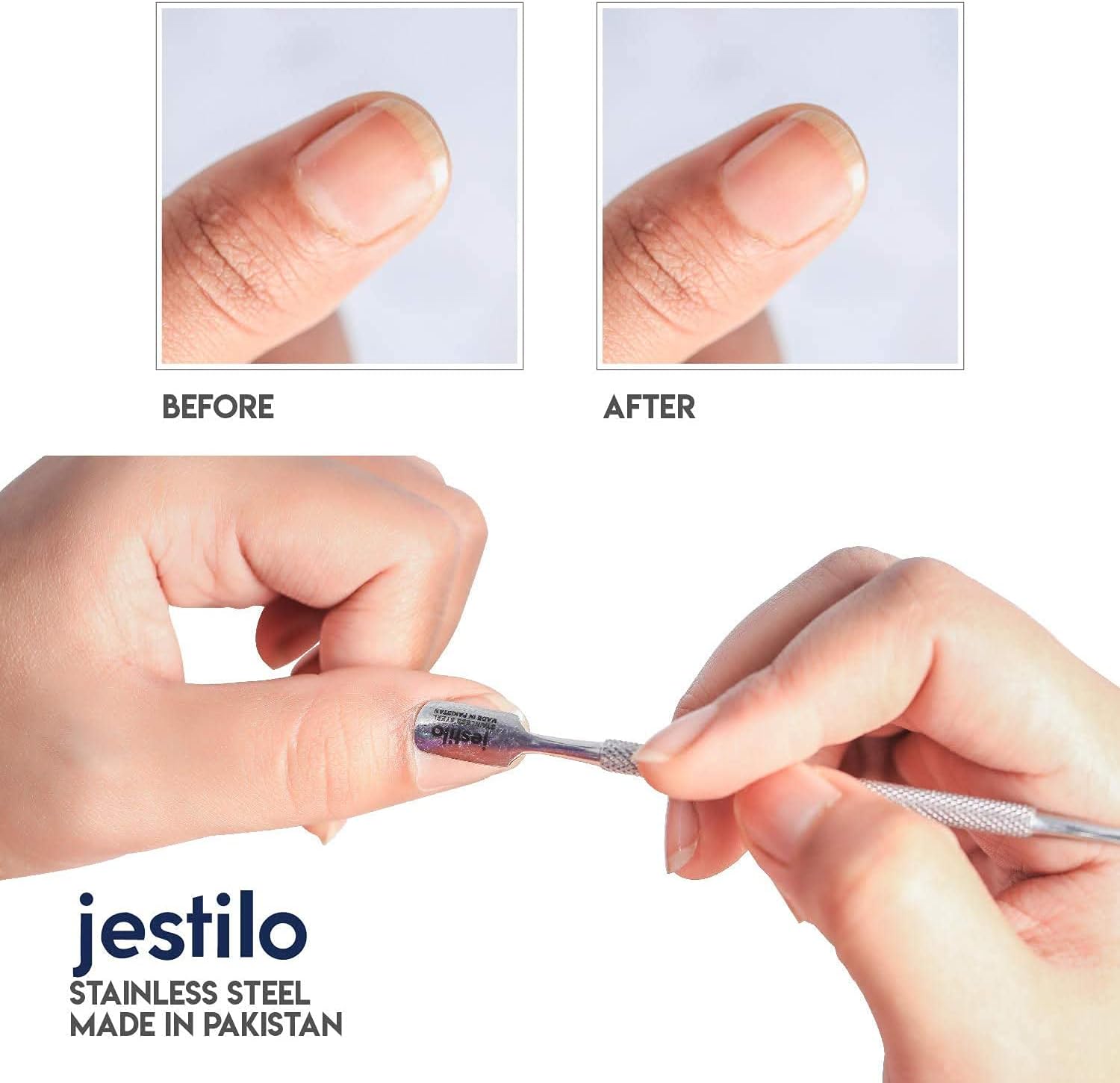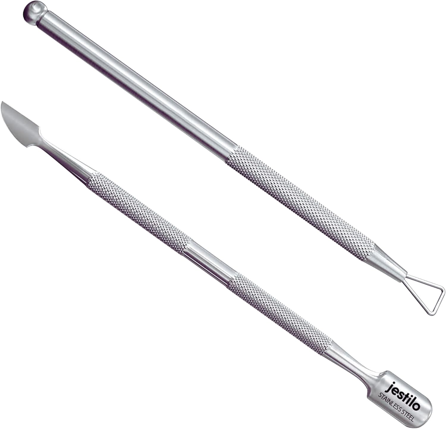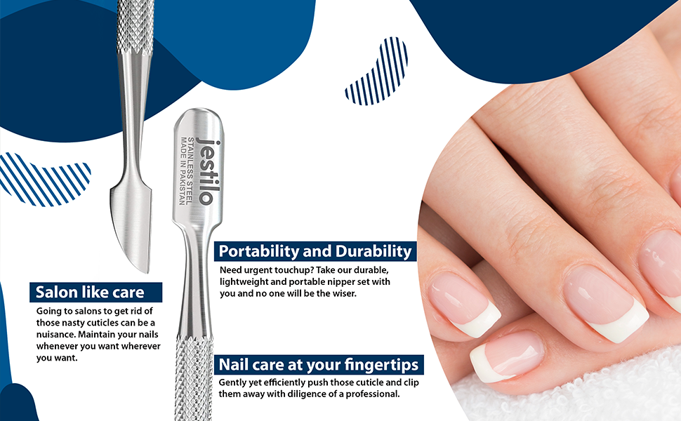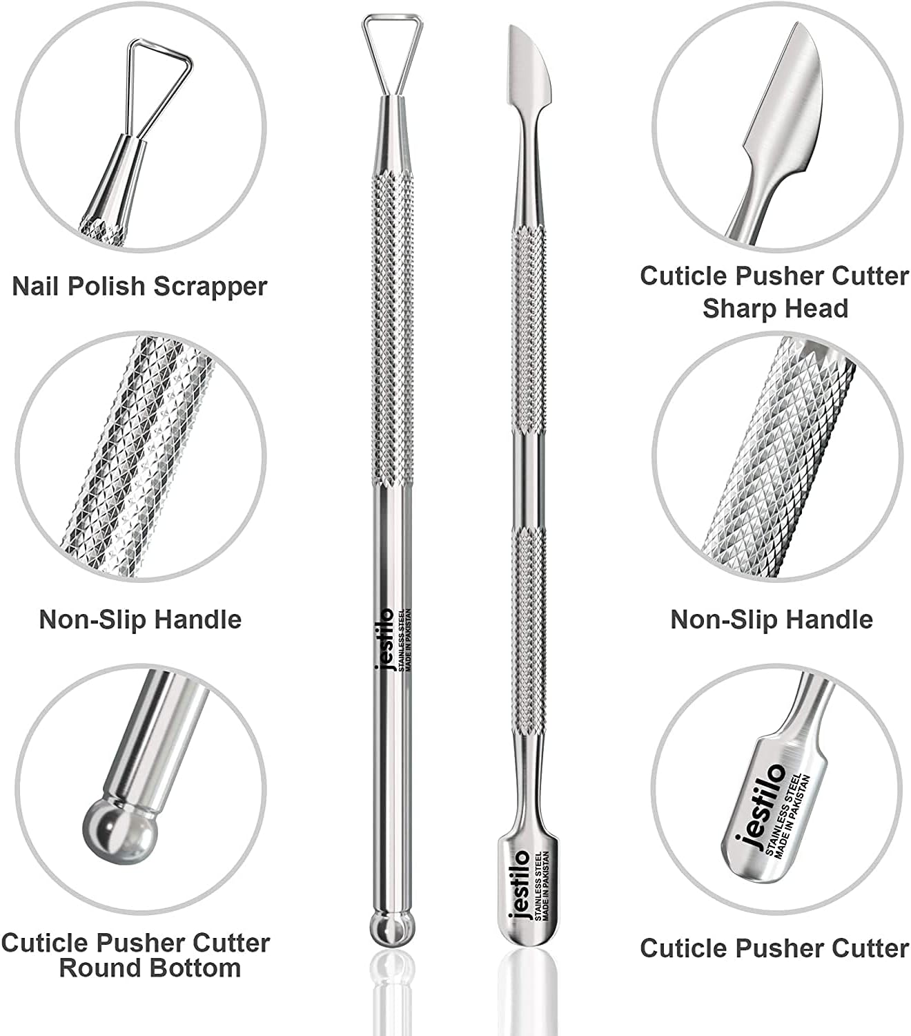 This professional 2-in-1 cuticle pusher and UV gel nail polish remover set is designed to deliver salon-quality manicures at home. Precision-crafted from surgical-grade stainless steel, these durable tools offer excellent corrosion resistance, long-lasting performance, and smooth, clean edges with no loose metal particles. The textured, non-slip grip ensures comfortable handling and precise control, making cuticle pushing, trimming, and gel polish removal easy and efficient. Complete with a compact storage box for hygiene and portability, this nail care tool set is ideal for everyday grooming, nail art preparation, and professional results without salon costs.