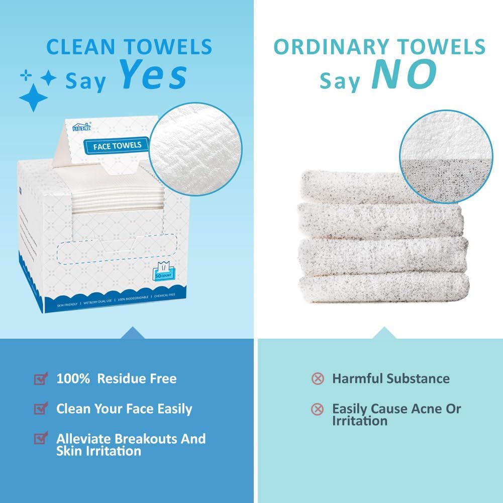 These ultra-soft disposable face towels provide a hygienic, gentle, and effective solution for daily skincare, makeup removal, and personal hygiene. Designed to reduce skin irritation and prevent bacteria buildup compared to traditional towels, each cloth features a dual-sided texture: a smooth surface for delicate wiping and a pearl-textured side for enhanced deep cleansing. Made from high-quality biodegradable fibers, these lint-free towels remain strong even when wet and are suitable for all skin types, especially sensitive skin. With excellent absorbency and versatile dry-and-wet use, they are ideal for skincare routines, travel, baby care, and light household cleaning.