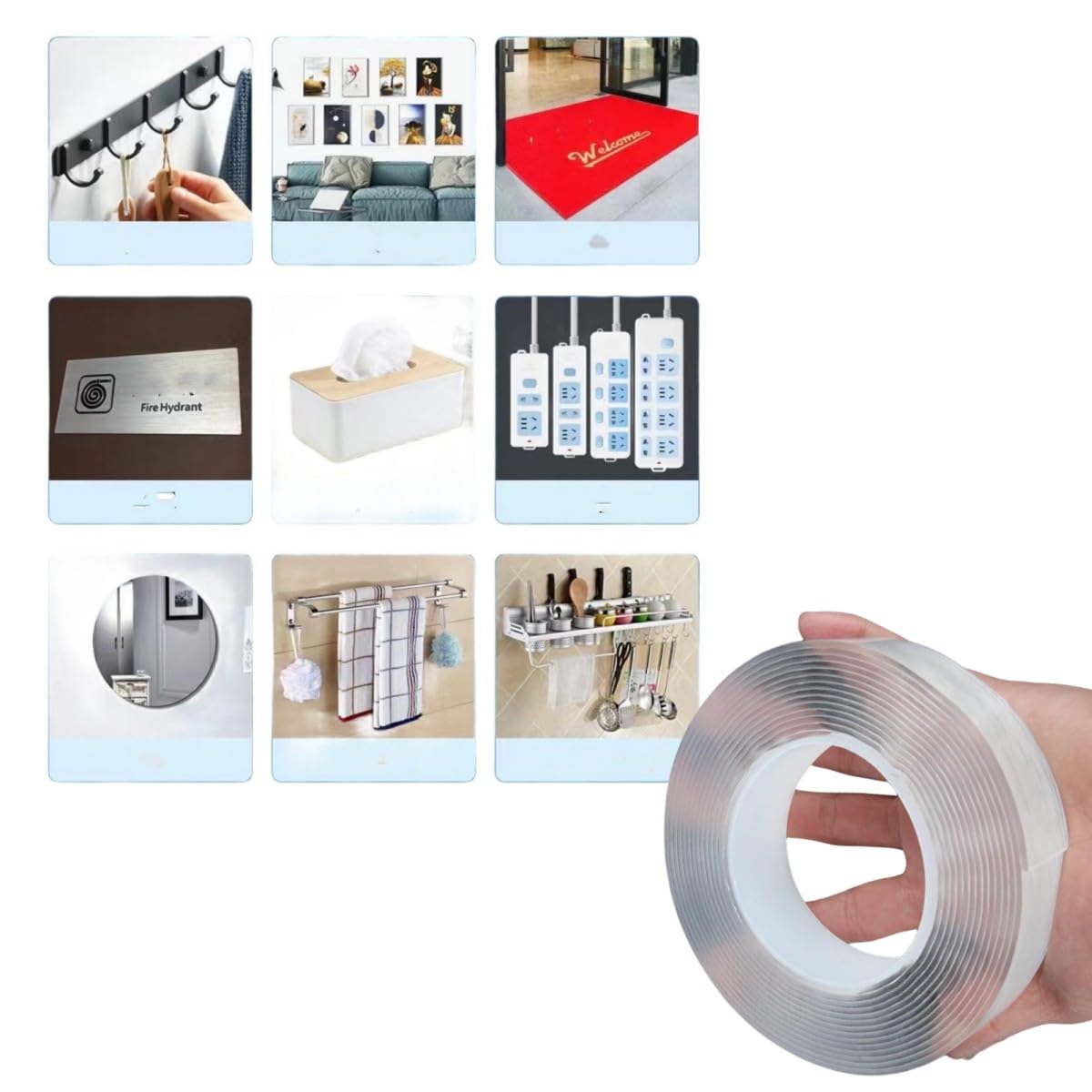 This strong, clear double-sided adhesive tape delivers reliable, long-lasting bonding for home, office, and outdoor use. Made from durable acrylic material, it provides powerful adhesion on clean, smooth surfaces while maintaining a discreet, transparent finish. The 1mm thickness ensures firm hold without bulk, making it ideal for mounting, decorating, and organizing projects. Designed to be removable and reusable, this versatile tape offers a practical, damage-free solution for everyday fixing needs. This tape set allows you to cut to size for frames, mirrors, décor, and mounting tasks where strength and flexibility matter.